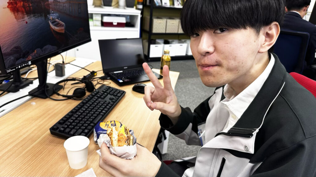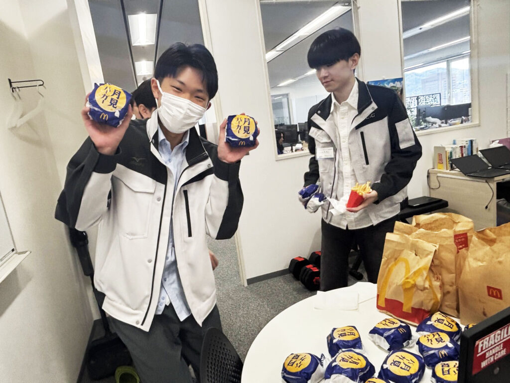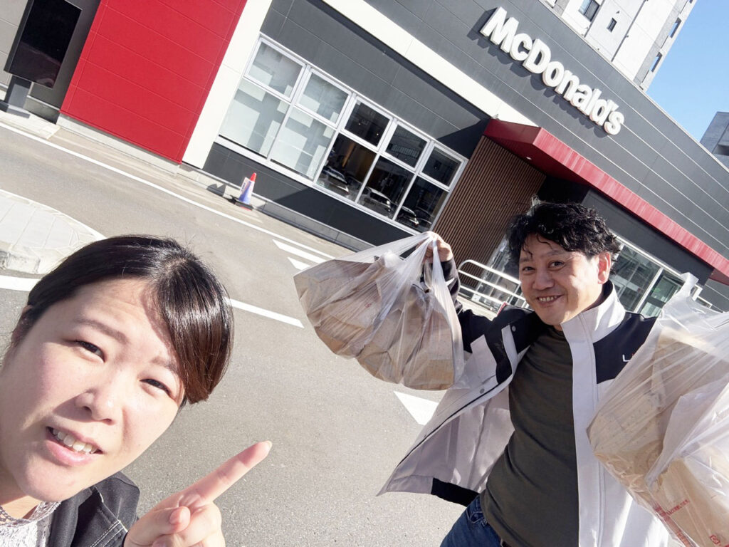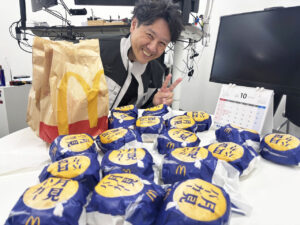 当日出社していた社員(当社はハイブリッド勤務)に対し、「月見マック食べたい人アンケート」により、20個の月見バーガーと、10個のポテトを購入する運びとなりました。