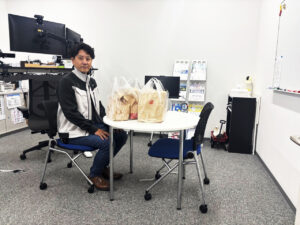 総勢約20名の社員の名前はしっかり覚えて配布完了です。