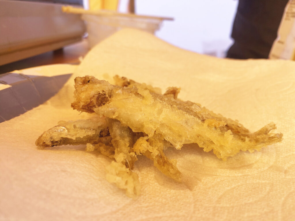 7匹を一体どうしようか…と思いましたが、せっかくなのでその場で簡単に天ぷらに。