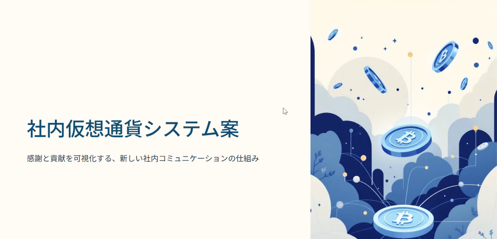 そのテーマのアイデアとして、社内仮想通貨システムを提案いただきました。