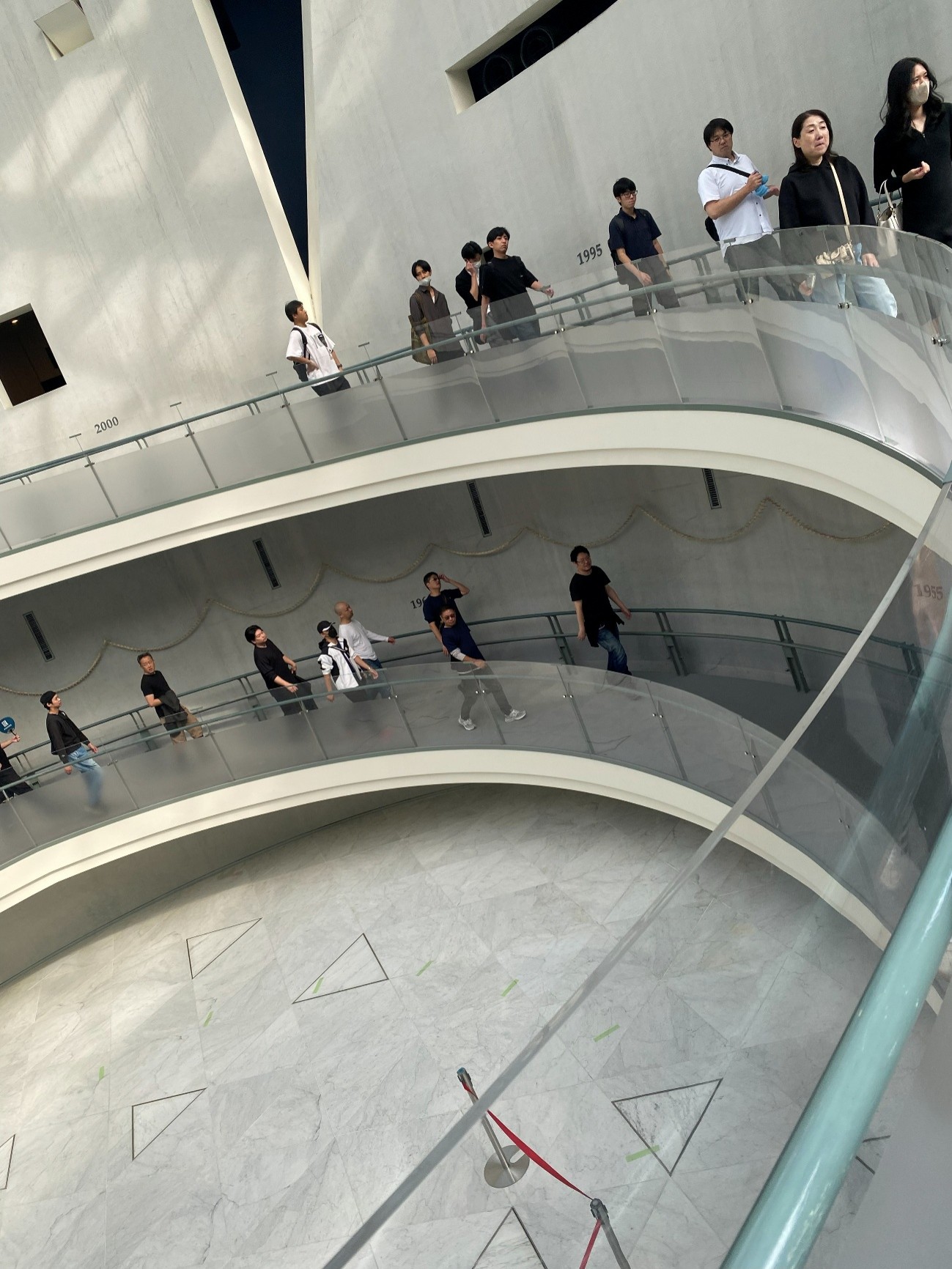 螺旋状になっているスロープを降りていると壁の西暦がどんどんと下がっていき1945年へと繋がります。