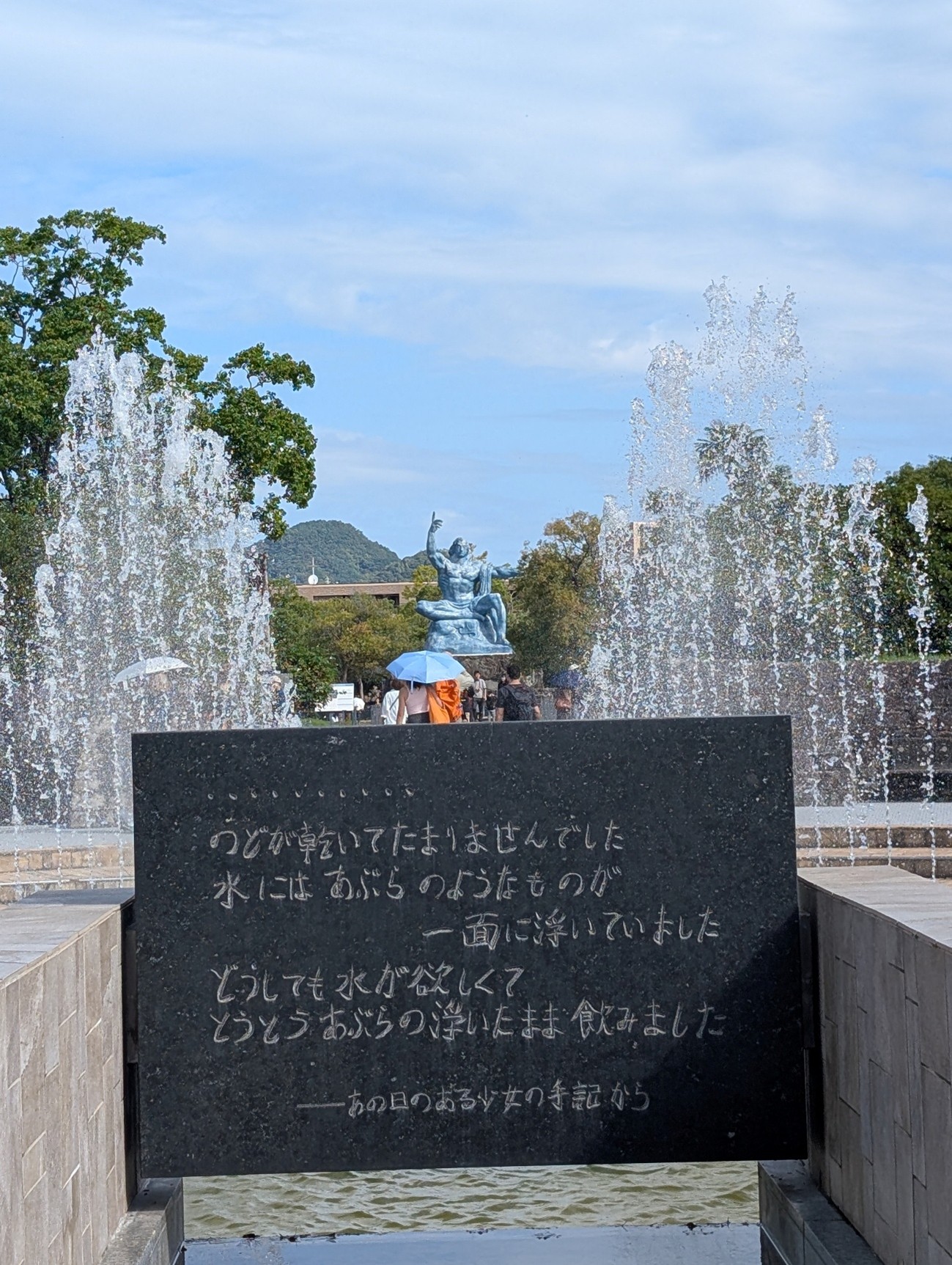 昨日から引き続きツアーガイドさんが当時の長崎の被害や平和記念公園について説明してくださいました。資料館以外にも長崎市内にはなんてない場所に防空壕残っており、何とも言えない虚しさと無力さを感じました。今こうして毎日普通に仕事ができていることが当たり前としてつづくように、平和を維持していきたいと強く思いました。