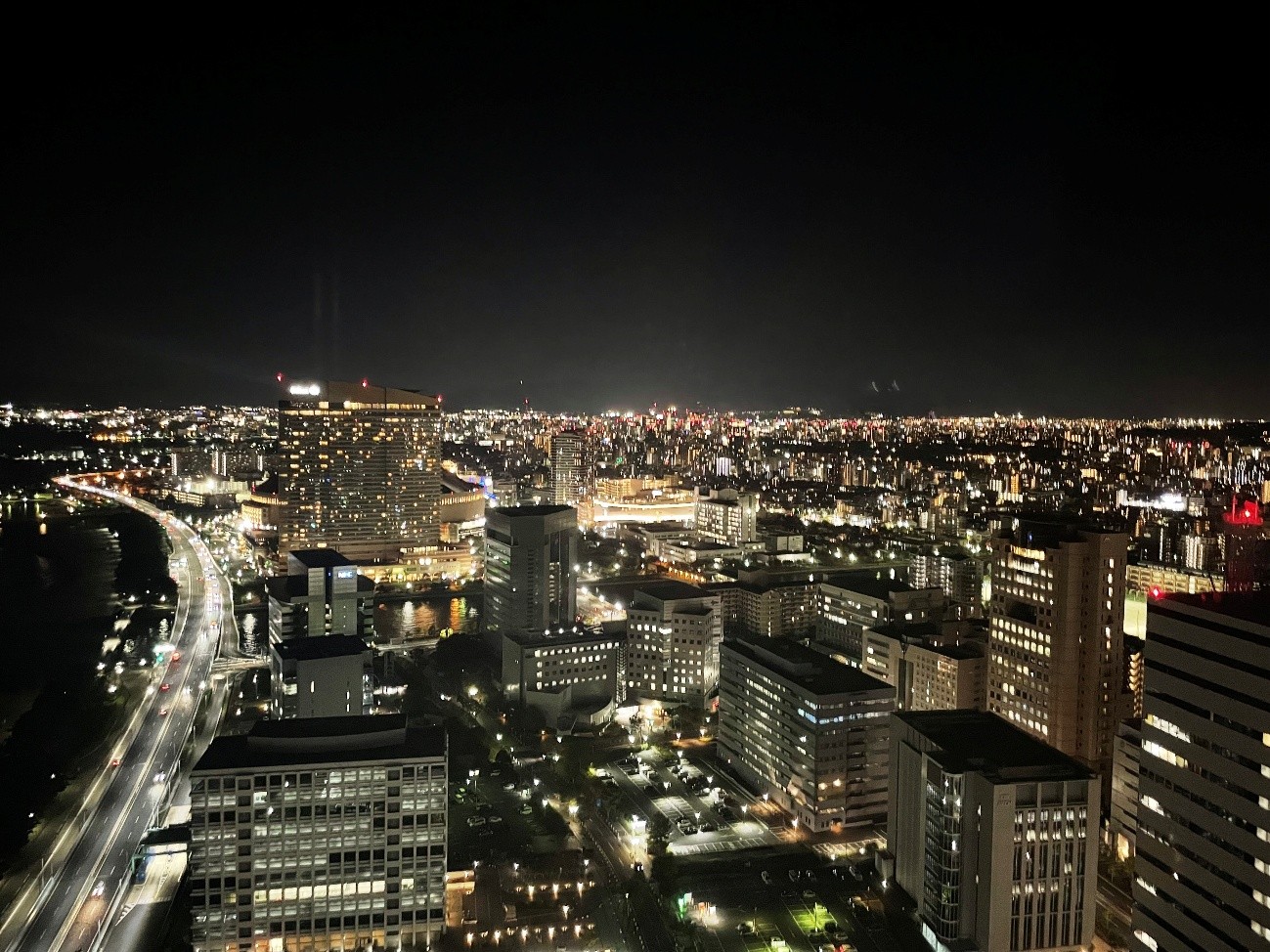 筆者は福岡タワーからの夜景を観に行きました、右側の道路は高速道路だと地元の博多弁バリバリのジェントルメンから教えてもらいました。